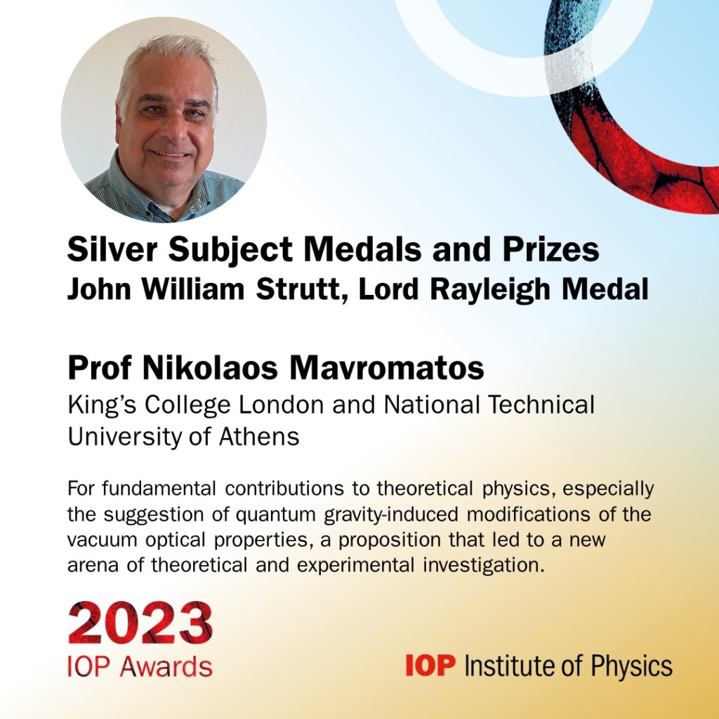 Δεν είναι η πρώτη φορά που βραβεύεται ο Νίκος Μαυρόματος. Το 1999 και το 2005 μοιράστηκε (με τους John Ellis και Δημήτρη Νανόπουλο) το πρώτο βραβείο από το Gravity Research Foundation:Search for quantum gravity (1999)The String Coupling Accelerates the Expansion of the Universe (2005)(via JD M) https://www.gravityresearchfoundation.org/award-winners-1