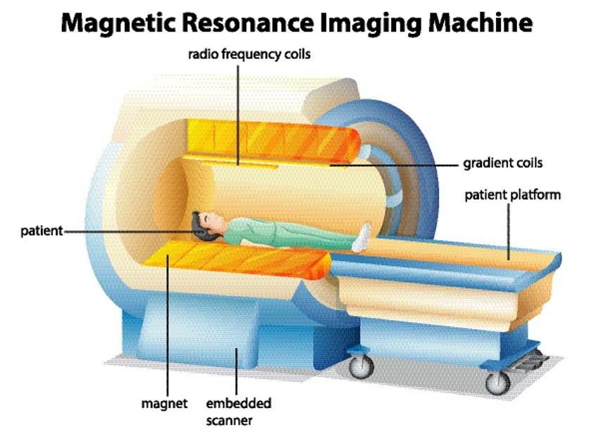 Οι σαρώσεις Μαγνητικής Τομογραφίας χρησιμοποιούν ισχυρά ομογενή μαγνητικά πεδία (τουλάχιστον 1,5 Tesla -15.000 φορές ισχυρότερα από το μαγνητικό πεδίο της Γης). Κάτω από αυτές τις συνθήκες οι πυρήνες υδρογόνου του σώματος (που βρίσκονται στο νερό και σχεδόν σε όλες τις άλλες χημικές ενώσεις του ανθρωπίνου οργανισμού) προσανατολίζονται παράλληλα ως προς τις μαγνητικές γραμμές του πεδίου και εκτελούν μεταπτωτική κίνηση γύρω από τον άξονα των μαγνητικών γραμμών με συγκεκριμένη συχνότητα περιστροφής. Η συχνότητα αυτή είναι χαρακτηριστική για κάθε άτομο. Αυτή η μεταπτωτική κίνηση αποτελεί ένα μέσο διερεύνησης των διαφόρων τύπων πυρήνων που εμπεριέχονται σε ένα σώμα, είτε αυτό είναι δείγμα κάποιας βιολογικής ή χημικής ουσίας είτε είναι ιστός κάποιου εξεταζόμενου. Κατά την διάρκεια της εξέτασης τα πηνία ραδιοσυχνότητας του μαγνητικού τομογράφου εκπέμπουν ραδιοκύματα, οι πυρήνες διεγείρονται και όταν μεταπίπτουν στην αρχική τους κατάσταση, εκπέμπουν ένα αδύνατο ραδιοφωνικό σήμα σε συγκεκριμένη συχνότητα. Αναλύοντας το αδύναμο εκπεμπόμενο ραδιοφωνικό σήμα δημιουργούνται λεπτομερείς εικόνες των εσωτερικών δομών του σώματος.