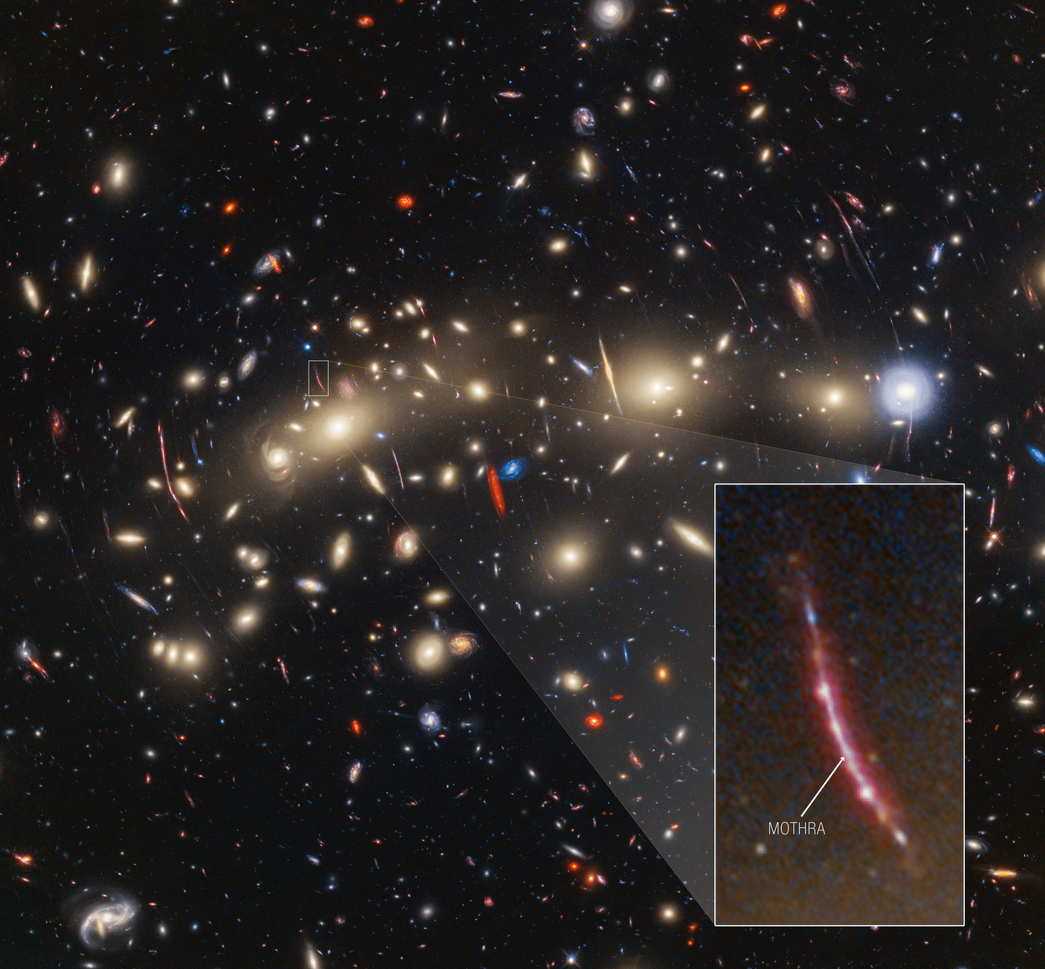 Ένας επιπλέον στόχος των αστρονόμων ήταν η αναζήτηση αντικειμένων των οποίων η παρατηρούμενη φωτεινότητα μεταβάλλεται. Αυτά τα κοσμικά αντικείμενα θα μπορούσαν να είναι μεμονωμένα άστρα τα οποία εκπέμπουν πολύ έντονο φως για κάποιο χρονικό διάστημα και στη συνέχεια το φως τους εξασθενεί για κάποιο λόγο. Ένα τέτοιο αντικείμενο που ξεχώριζεi από τα άλλα, ανήκει σε έναν γαλαξια που μεγεθύνθηκε κατά τουλάχιστον 4000, ο οποίος σχηματίστηκε περίπου 3 δισεκατομμύρια χρόνια μετά τη Μεγάλη Έκρηξη. Οι αστρονόμοι το ονόμασαν Mothra σε αναλογία το όνομα Godzilla που έδωσαν σ’ ένα άλλο άστρο μεγεθυμένου επίσης από το φαινόμενο βαρυτικού φακού. Οι Godzilla και Mothra είναι γνωστά γιγάντια τέρατα που πρωτοεμφανίστηκαν στον ιαπωνικό κινηματογράφο.