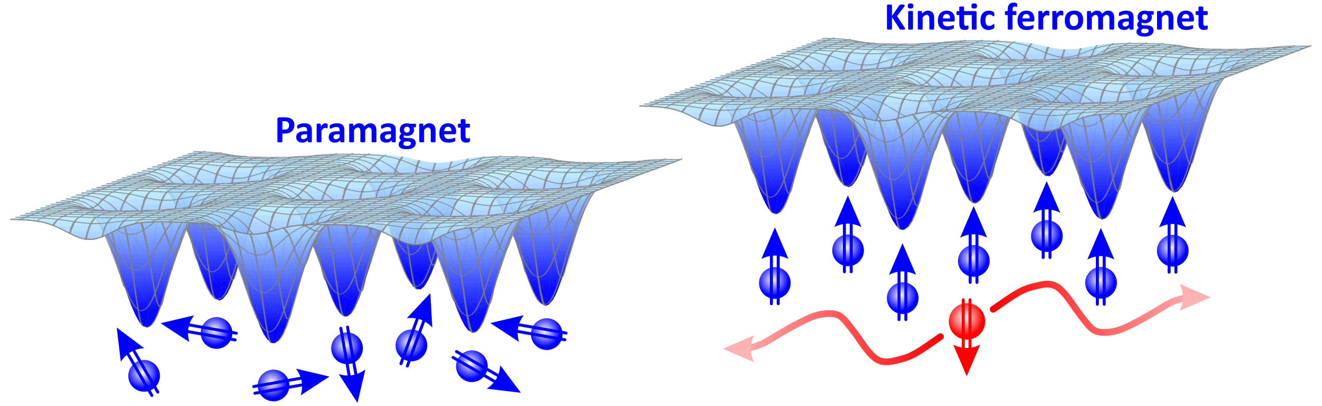 – Σε αυτόν τον «κινητικό μαγνητισμό» το υλικό γίνεται μαγνητικό επειδή η ενέργεια κίνησης των ηλεκτρονίων ελαχιστοποιείται όταν οι μαγνητικές ροπές τους ευθυγραμμίζονται.