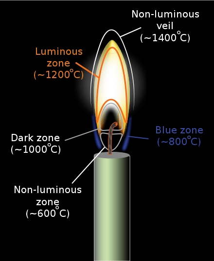 Κάτι ενδιαφέρον σχετικά με τη φλόγα είναι ότι έχει διακριτές στρώσεις, στις οποίες λαμβάνουν χώρα διαφορετικά στάδια της χημικής αντίδρασης. Αν έχεις ποτέ κοιτάξει από κοντά τη φλόγα ενός κεριού, σίγουρα θα έχεις δει αυτές τις στρώσεις. Πιο κοντά στην καύσιμη ύλη είναι η εσωτερική στρώση – αυτή είναι το λιγότερο ζεστό σημείο και περιέχει ένα μείγμα καυτών υδρατμών απ΄την καύσιμη ύλη και λίγο οξυγόνο. Η μεσαία στρώση της φλόγας είναι το μέρος όπου η αντίδραση αρχίσει να δυναμώνει – είναι πολύ πιο ζεστή και φωτεινή από την εσωτερική στρώση. Τέλος, η εξωτερική στρώση είναι το μέρος που η χημική αντίδραση προχωράει για τα καλά – είναι η πιο ζεστή και η πιο λεπτή στρώση της φλόγας.