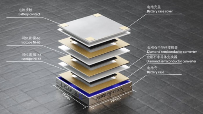 Η ομάδα επιστημόνων της εταιρείας ανέπτυξε ένα νέο ημιαγωγό διαμαντιού πάχους μόλις 10 μm, τοποθετώντας ένα φύλλο νικελίου-63 πάχους 2 μm μεταξύ δύο ημιαγωγών που μετατρέπουν την «πυρηνική» ενέργεια σε ηλεκτρική.