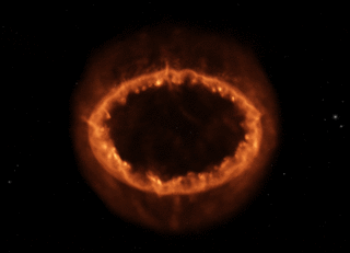 Δεν ξέρουμε με σιγουριά τι απέμεινε από τον σουπερνόβα 1987Α. Οι περισσότεροι αστροφυσικοί ποντάρουν στον σχηματισμό ενός αστέρα νετρονίων. Αλλά η ανακοίνωση, στις αρχές του 1989, της παρατήρησης ενός πάλσαρ συχνότητας 1968 στροφών/δευτερόλεπτο αποδείχθηκε εσφαλμένη. Και η αναμενόμενη μεταφορά κινητικής ενέργειας από τον πάλσαρ στο περιβάλλον κέλυφος δεν έχει παρατηρηθεί… Το διαστημικό τηλεσκόπιο Ηubble φωτογράφησε το διαστελλόμενο κέλυφος που σχηματίστηκε κατά την έκρηξη…