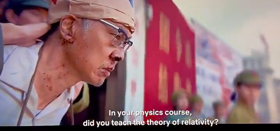 Ένας φυσικός ξυλοκοπείται μέχρι θανάτου από τους ερυθροφρουρούς μπροστά στα μάτια της κόρης του, ενώ ένα αφηνιασμένο πλήθος ζητωκραυγάζει κραδαίνοντας το κόκκινο βιβλιαράκι. Οι κατηγορίες που βαραίνουν τον φυσικό είναι ότι δίδασκε την θεωρία της σχετικότητας του Αϊνστάιν και ότι υποστήριζε την θεωρία της Μεγάλης Έκρηξης: