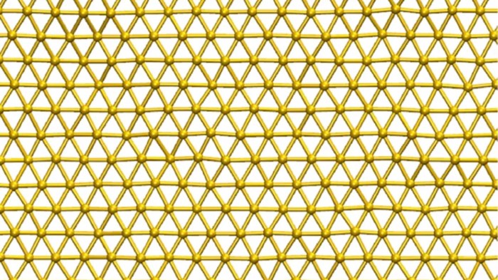 Κάθε άτομο χρυσού συνδέεται με άλλα έξι άτομα χρυσού σχηματίζοντας έτσι μια επιφάνεια πάχους μόνο ενός ατόμου.