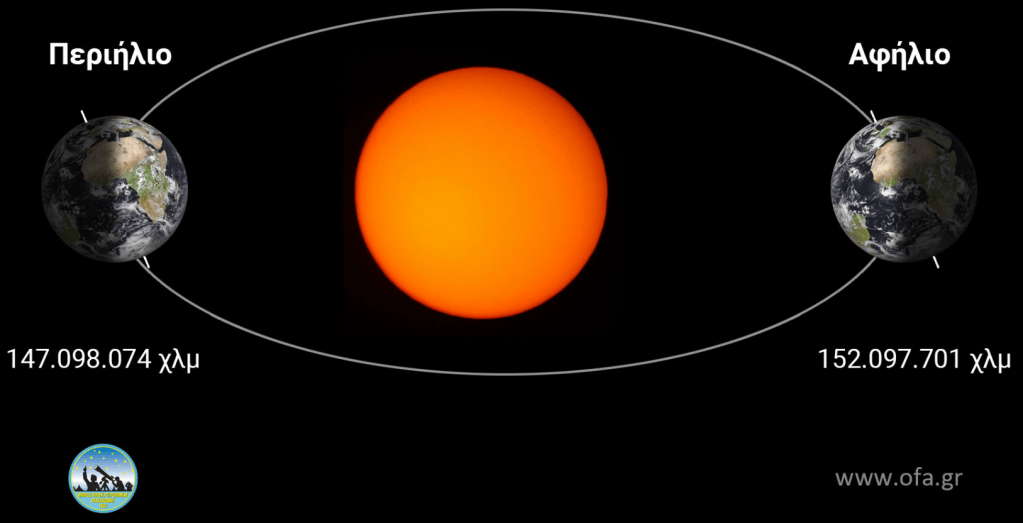 Αν και βρισκόμαστε στο μέσον του καλοκαιριού η Γη βρίσκεται στη μεγαλύτερη απόσταση από τον Ήλιο! Είναι φανερό λοιπόν ότι η απόσταση της Γης από τον Ήλιο δεν έχει καμία σχέση με το ότι τον χειμώνα κάνει κρύο και ζέστη το καλοκαίρι. Άσε που όταν εμείς του βορείου ημισφαιρίου έχουμε καλοκαίρι, οι του νοτίου έχουν χειμώνα και αντιστρόφως.