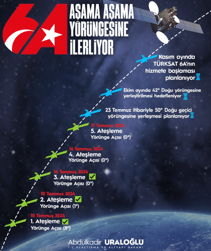 Πανηγυρίζουν στην Άγκυρα για τον «πρώτο δορυφόρο κατασκευασμένο στην Τουρκία». Ο Τούρκος υπουργός Μεταφορών και Υποδομών Αμπντουλντακίρ Ουράλογλου ανακοίνωσε νωρίς την Πέμπτη ότι ο Turksat 6A, ο πρώτος εγχώριας κατασκευής τηλεπικοινωνιακός δορυφόρος της γείτονος, ολοκλήρωσε την πέμπτη και τελευταία του εκτόξευση.