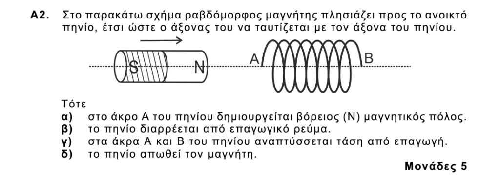 (α) στο άκρο του πηνίου (που πλησιάζει ο μαγνήτης) δημιουργείται βόρειος πόλος