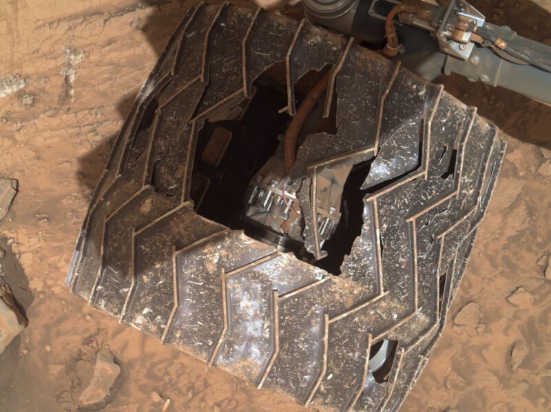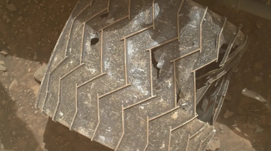 Μετά από περισσότερα από 12 χρόνια εξερεύνησης του Άρη, το διαστημικό όχημα Curiosity της NASA διάνυσε περίπου 32 χιλιόμετρα στην κακοτράχαλη επιφάνεια του Άρη. Όπως είναι λογικό, μετά από τόσο χρόνια σε ένα τόσο ακραίων συνθηκών περιβάλλον το όχημα έχει υποστεί φθορές αλλά συνεχίζει να κινείται στο αρειανό έδαφος και να εξερευνά στέλνοντας στη Γη εικόνες και δεδομένα. Η NASA έδωσε στη δημοσιότητα νέες εικόνες από τους τροχούς του Curiosity που φαίνονται φθαρμένοι και τρυπημένοι σε διάφορα σημεία: