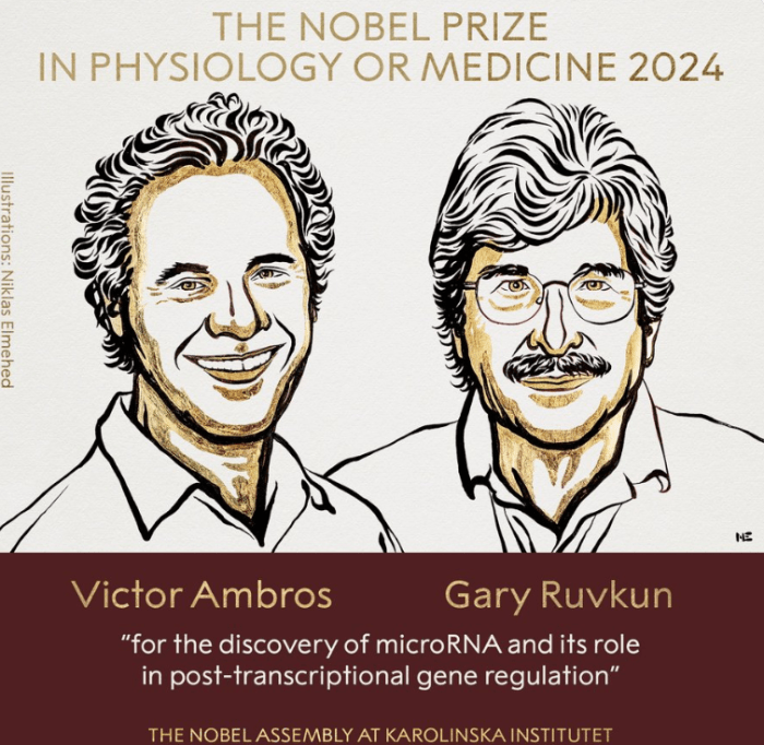 Το βραβείο Νόμπελ 2024 στην Φυσιολογία (ή Ιατρική) απονεμήθηκε στους αμερικανούς Victor Ambros και Gary Ruvkun «για την ανακάλυψη του microRNA και τον ρόλο του στη μετα-μεταγραφική (post-transcriptional regulation) γονιδιακή ρύθμιση».