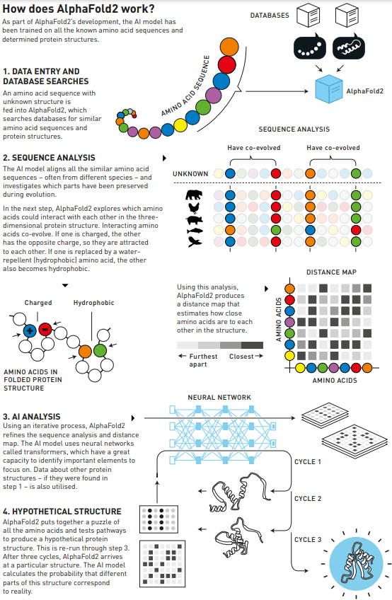 Το 2020 οι Demis Hassabis και John Jumper παρουσίασαν ένα μοντέλο Τεχνητής Νοημοσύνης που ονομάζεται AlphaFold2. Με τη βοήθειά του, μπόρεσαν να προβλέψουν τη δομή σχεδόν και των 200 εκατομμυρίων πρωτεϊνών που έχουν εντοπίσει οι ερευνητές. Από την ανακάλυψή τους, το AlphaFold2 έχει χρησιμοποιηθεί από περισσότερα από δύο εκατομμύρια άτομα από 190 χώρες. Μεταξύ μιας από τις πολυάριθμες επιστημονικές εφαρμογές, οι ερευνητές μπορούν τώρα να κατανοήσουν καλύτερα την αντοχή στα αντιβιοτικά και να δημιουργήσουν εικόνες ενζύμων που μπορούν να αποσυνθέσουν το πλαστικό.