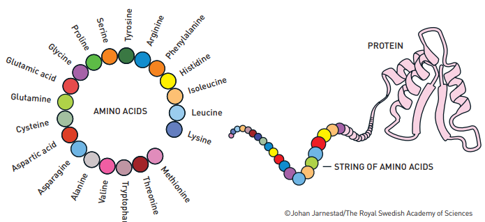 Οι πρωτεΐνες αποτελούνται γενικά από 20 διαφορετικά αμινοξέα, τα οποία μπορούν να περιγραφούν ως δομικά στοιχεία της ζωής.