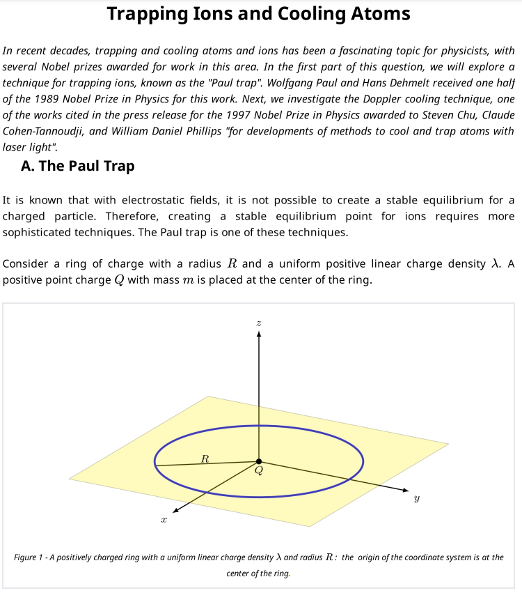 Η Ολυμπιάδα Φυσικής 2024, διεξήχθη από 21 έως 29 Ιουλίου 2024 στην πόλη Ισφαχάν του Ιράν. Τα θέματα που τέθηκαν ήταν δύσκολα, όπως για παράδειγμα το πρόβλημα που ακολουθεί: