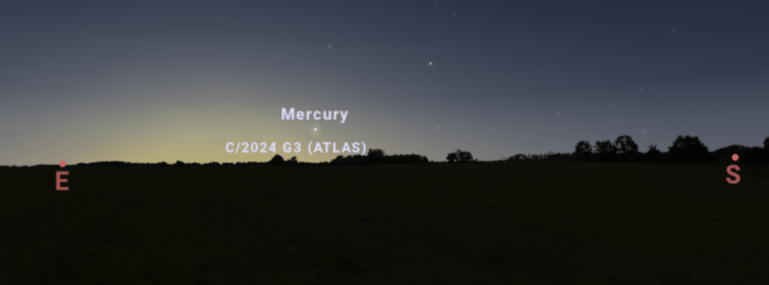 O πλανήτης Ερμής αυτές τις μέρες εμφανίζεται χαμηλά ανατολικά στο λυκαυγές με φαινόμενο μέγεθος -0,4 και γι αυτό είναι δύσκολο να τον παρατηρήσουμε.