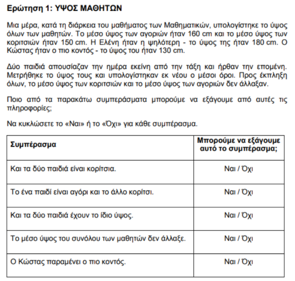 Αποτυχία στην απάντηση δεν σημαίνει ότι ο αποτυχών δεν έχει καταλάβει τι εστί «μέσος όρος».
