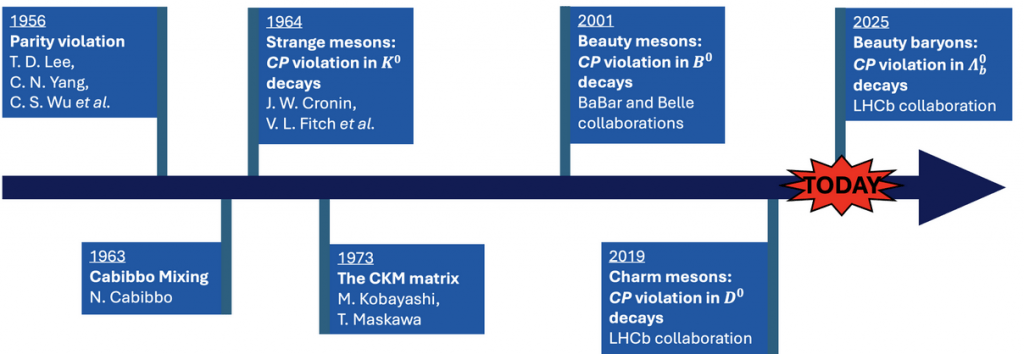 Στο Καθιερωμένο Πρότυπο, η ύπαρξη και το συνολικό μέγεθος της παραβίασης της συμμετρίας CP καθορίζονται από μία μόνο παράμετρο, αν και η εκδήλωσή της σε μια συγκεκριμένη διάσπαση επηρεάζεται από πολλές άλλες παραμέτρους. Οι τιμές αυτών των θεμελιωδών παραμέτρων μπορούν να προσδιοριστούν πειραματικά μετρώντας πολλές διαφορετικές διαδικασίες παραβίασης CP. Το συνδυασμένο σύνολο αυτών των μετρήσεων, πολλές από τις οποίες έχουν πραγματοποιηθεί στον LHCb, συμφωνεί πολύ καλά με τις προβλέψεις του Καθιερωμένου Προτύπου για όλα τα φαινόμενα παραβίασης της συμμετρίας CP που είναι γνωστά μέχρι στιγμής στη σωματιδιακή φυσική. Η παρατήρηση της παραβίασης της CP στις διασπάσεις βαρυονίων ανοίγει ένα νέο δρόμο για τον έλεγχο του Καθιερωμένου Προτύπου και την αναζήτηση νέας φυσικής, ρίχνοντας νέο φως στον γρίφο της παραβίασης CP.