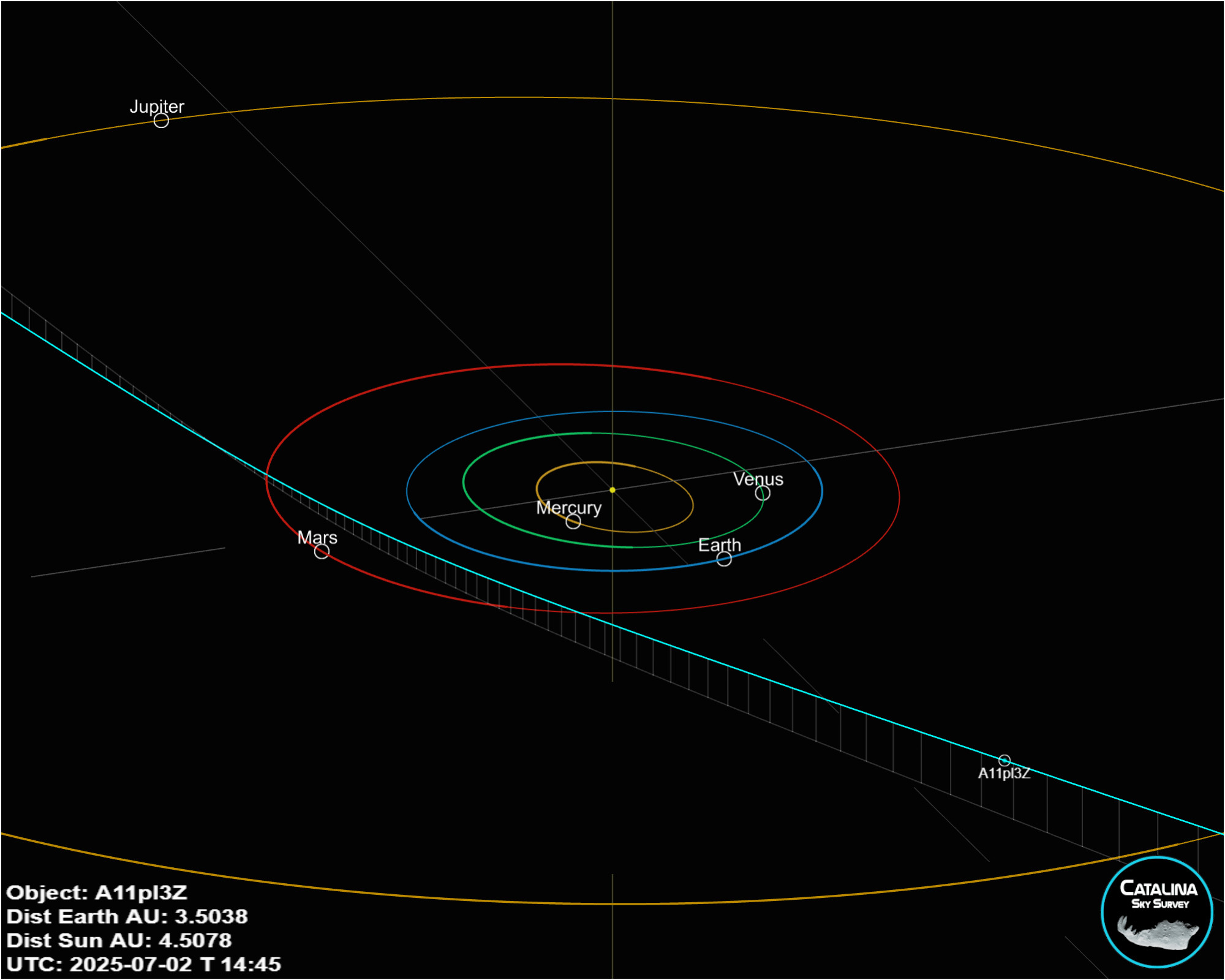 Το αντικείμενο A11pl3Z γεννήθηκε σε κάποιο άλλο πλανητικό σύστημα. Για κάποιο λόγο διέφυγε από αυτό και περιπλανάται στον διαστρικό χώρο. Τώρα διασχίζει το ηλιακό μας σύστημα και οι αστρονόμοι το εντόπισαν.