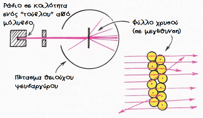 Με το σπουδαίο πείραμα των Geiger–Marsden (που επέβλεψε ο Rutherford) το 1909, όπου σωματίδια άλφα από μια ραδιενεργό πηγή ραδίου προσέπιπταν έναν στόχο από χρυσό, αποδείχθηκε ότι το άτομο είναι ως επί το πλείστον κενός χώρος, και ότι σχεδόν όλη μάζα του είναι συγκεντρωμένη στην κεντρική του περιοχή – στον ατομικό πυρήνα.