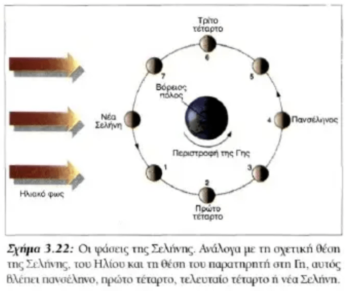 Ανοίγοντας ένα σχολικό βιβλίο Αστρονομίας, για παράδειγμα το «ΣΤΟΙΧΕΙΑ ΑΣΤΡΟΝΟΜΙΑΣ & ΔΙΑΣΤΗΜΙΚΗΣ» της B΄ Τάξης Γενικού Λυκείου, διαβάζουμε άλλη μια φορά για τις ΦΑΣΕΙΣ ΤΗΣ ΣΕΛΗΝΗΣ: