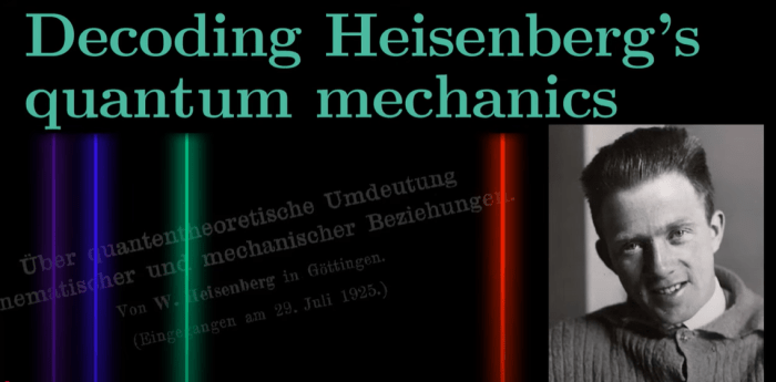 Στο βίντεο που ακολουθεί, ο Dr. Jorge S. Diaz, επιχειρεί να κάνει την εργασία του Χάιζενμπεργκ πιο κατανοητή. Περιγράφει με όσο το δυνατόν απλό τρόπο τις ιδέες, τις έννοιες και τους υπολογισμούς που μας δείχνουν πώς ο Χάιζενμπεργκ δημιούργησε την κβαντομηχανική. Επισημαίνει που και πώς εμφανίζεται η ενέργεια μηδενικού σημείου, αλλά και το περίγραμμα αυτού που αργότερα ονομάστηκε «αρχή της αβεβαιότητας».