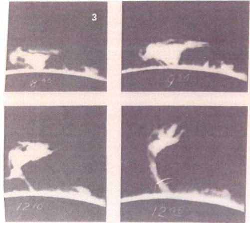 Στη χρωμόσφαιρα, το ηλιακό στρώμα πάνω από τη φωτόσφαιρα, παρατηρούμε τις προεξοχές (Σχ. 4).