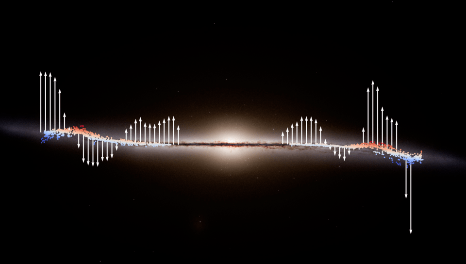Γνωρίζουμε ότι τα αστέρια του Γαλαξία περιστρέφονται γύρω από το κέντρο του και το τηλεσκόπιο Γαία έχει μετρήσει τις ταχύτητες και τις κινήσεις τους. Το ίδιο τηλεσκόπιο ανακάλυψε ότι ο δίσκος του Γαλαξία ταλαντεύεται με την πάροδο του χρόνου παρόμοια με την κίνηση μίας σβούρας. Συνολικά, το διαστημικό τηλεσκόπιο Γαία, που «σίγησε» τον περασμένο Μάρτιο, μας έχει προσφέρει τον μεγαλύτερο και ακριβέστερο πολυδιάστατο χάρτη του Γαλαξία μας. Τώρα η μελέτη των δεδομένων του δίνει στους ερευνητές μία επιπλέον νέα πληροφορία: Ένα μεγάλο κύμα μετακινεί τα άστρα του Γαλαξία μας σε αποστάσεις δεκάδων χιλιάδων ετών φωτός από τον Ήλιο. Η ανακοίνωση του ESA παρομοιάζει αυτό το γαλαξιακό κύμα αστεριών με τους κυματισμούς προς τα έξω που προκαλεί μία πέτρα όταν πέφτει σε μία λίμνη.