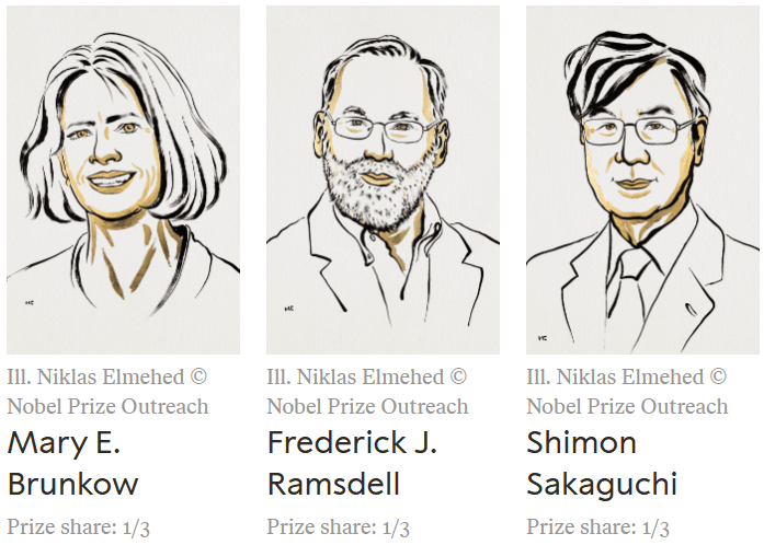 Tο Βραβείο Νόμπελ Ιατρικής 2025 απονεμήθηκε στους: Mary E. Brunkow (ΗΠΑ), Fred Ramsdell (ΗΠΑ) και Shimon Sakaguchi (Ιαπωνία) «για τις ανακαλύψεις τους σχετικά με την περιφερική ανοσολογική ανοχή»