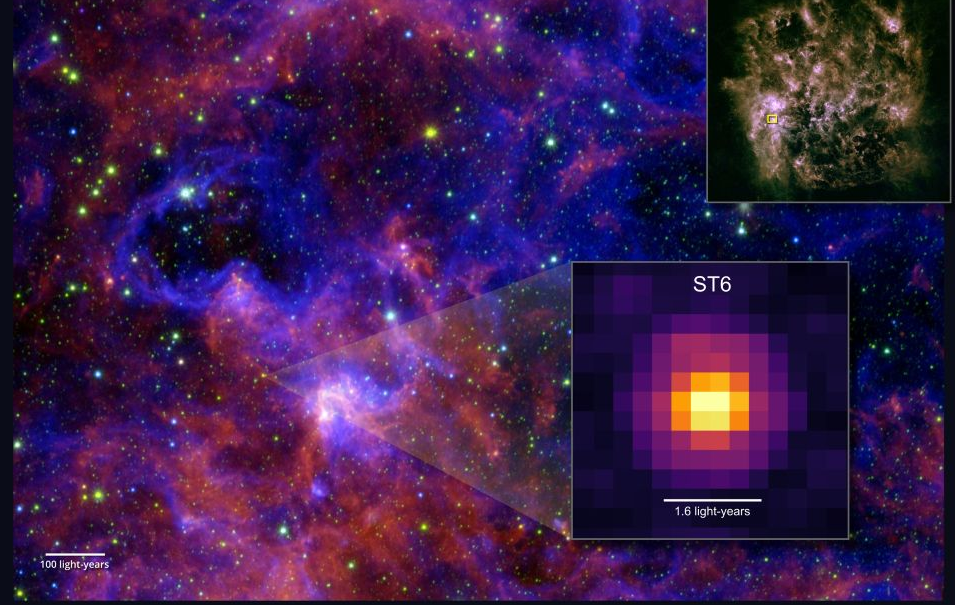 Οι αστρονόμοι μελετώντας τον πρωτοαστέρα ST6 στο Μεγάλο Νέφος του Μαγγελάνου με τα ειδικά όργανα του διαστημικού τηλεσκοπίου James Webb, ανίχνευσαν την ύπαρξη πολύπλοκων οργανικών μορίων όπως: μεθανόλη (CH3OH), ακεταλδεύδη (CH3CHO), οινόπνευμα ή αιθανόλη (CH3CH2OH), μυρμηκικός μεθυλεστέρας (HCOOCH3), και ξύδι ή οξικό οξύ (CH3COOH). Εκτός από την μεθανόλη, για τις υπόλοιπες οργανικές ενώσεις είναι η πρώτη αναμφισβήτητη ανίχνευσή τους σε μορφή πάγου εκτός του Γαλαξία μας και σε περιβάλλον χαμηλής μεταλλικότητας. Το φάσμα του ST6 είναι επίσης πλούσιο σε απλές χημικές ενώσεις σε μορφή πάγου: νερό (H2O), διοξείδιο του άνθρακα (CO2), μεθάνιο (CH4), διοξείδιο του θείου (SO2), μυρμηκικό οξύ (HCOOH), αμμωνία (NH3) και ιόντα αμμωνίου NH4+.