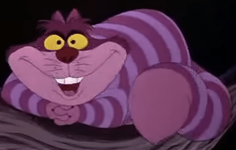«Εντάξει», είπε ο Γάτος· και αυτή τη φορά εξαφανίστηκε αρκετά αργά, ξεκινώντας από την άκρη της ουράς και τελειώνοντας με το χαμόγελο, το οποίο παρέμεινε αρκετή ώρα αφότου είχε εξαφανιστεί το υπόλοιπο σώμα.
