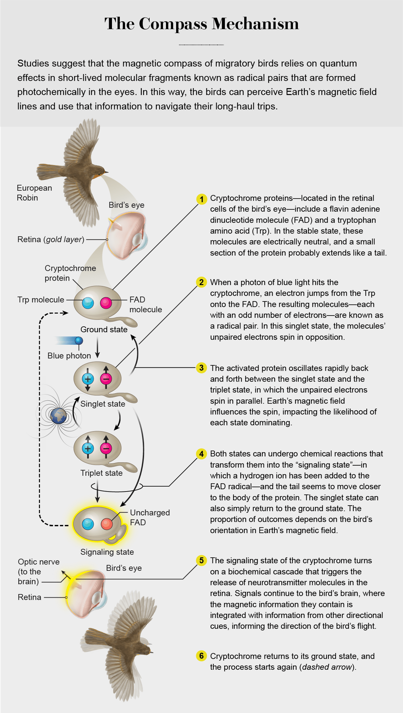 διαβάστε σχετικά: Πώς τα αποδημητικά πτηνά χρησιμοποιούν τα κβαντικά φαινόμενα για να πλοηγηθούν (www.scientificamerican.com)