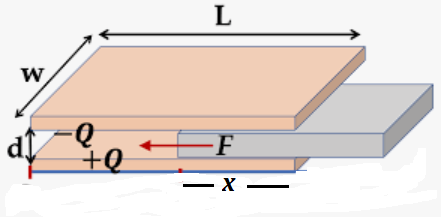 Στην πρώτη περίπτωση (σταθερό φορτίο) η δύναμη μειώνεται καθώς αυξάνεται το x και η ενέργεια του πυκνωτή μειώνεται, ενώ στην δεύτερη περίπτωση (σταθερή τάση) η δύναμη παραμένει σταθερή και η ενέργειά του αυξάνεται εξαιτίας της πηγής.