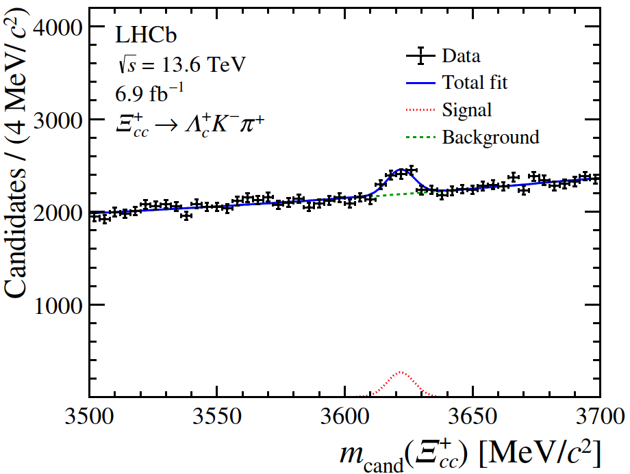 Το νέο σωματίδιο ταυτοποιήθηκε διαμέσου της διάσπασής του: Ξcc+ → Λc+ K–π+, με το Λc+ να διασπάται προς p K–π+.