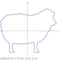 Οι παραμετρικές εξισώσεις [x=x(t), y=y(t)] της καμπύλης του προβάτου είναι λίγο περίπλοκες: καιΗ καμπύλη που ορίζουν αυτές οι εξισώσεις για t από 0 έως 2π παριστάνει πράγματι ένα πρόβατο! πηγή: https://www.wolframalpha.com/input/?i=sheep+curve