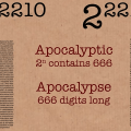 Ένας αριθμός της μορφής 2n που περιέχει οπουδήποτε στα ψηφία του τον αριθμό 666 (τον αριθμό του θηρίου) ονομάζεται αποκαλυπτικός αριθμός. Για παράδειγμα οι αριθμοί 2157, 2192, 2218, 2220, … είναι αποκαλυπτικοί αριθμοί. Στο βίντεο του Numberphile που ακολουθεί οι αποκαλυπτικοί αριθμοί πολλαπλασιάζονται… Read More ›