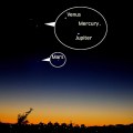 Το θέαμα του σαββατοκύριακου θα είναι ασφαλώς η σύνοδος των εσωτερικών πλανητών Ερμή και Αφροδίτης. Δείτε τους μετά το ηλιοβασίλεμα, περίπου στο διάστημα 18:30-19:30 στο δυτικό ουρανό. Καθαρός ορίζοντας απαιτείται καθώς θα βρίσκονται σε ύψος 10 μοιρών και σταδιακά χαμηλότερο…. Read More ›
