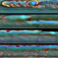 …από το Cassini και από επίγεια τηλεσκόπια Η παραπάνω εικόνα υπέρυθρης ακτινοβολίας έχει ληφθεί από το διαστημικό σκάφος της NASA, Cassini. Τα χρώματα στην εικόνα έχουν τοποθετηθεί εκ των υστέρων και εκφράζουν μήκη κύματος του υπερύθρου φωτός που είναι αόρατο… Read More ›