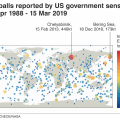 Δεκάδες διαστημικοί βράχοι με διάμετρο τουλάχιστον ενός μέτρου εισέρχονται κάθε χρόνο στη γήινη ατμόσφαιρα, δείχνει νέος χάρτης που δημοσιοποίησε η NASA. Περίπου μια φορά το χρόνο, μετέωρα σε μέγεθος αυτοκινήτου απελευθερώνουν ακραίες ποσότητες ενέργειας, σπάνια όμως φτάνουν μέχρι το έδαφος…. Read More ›